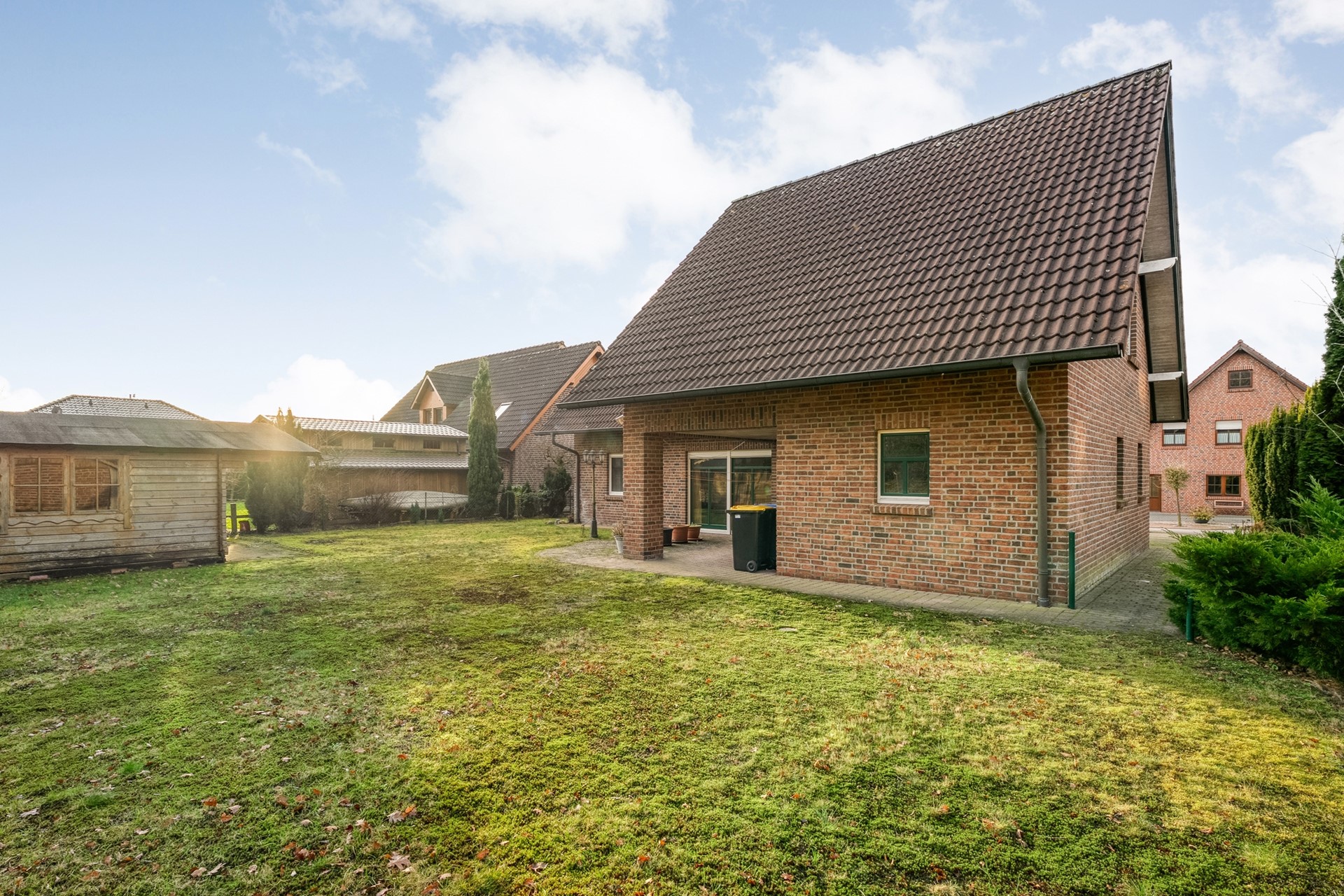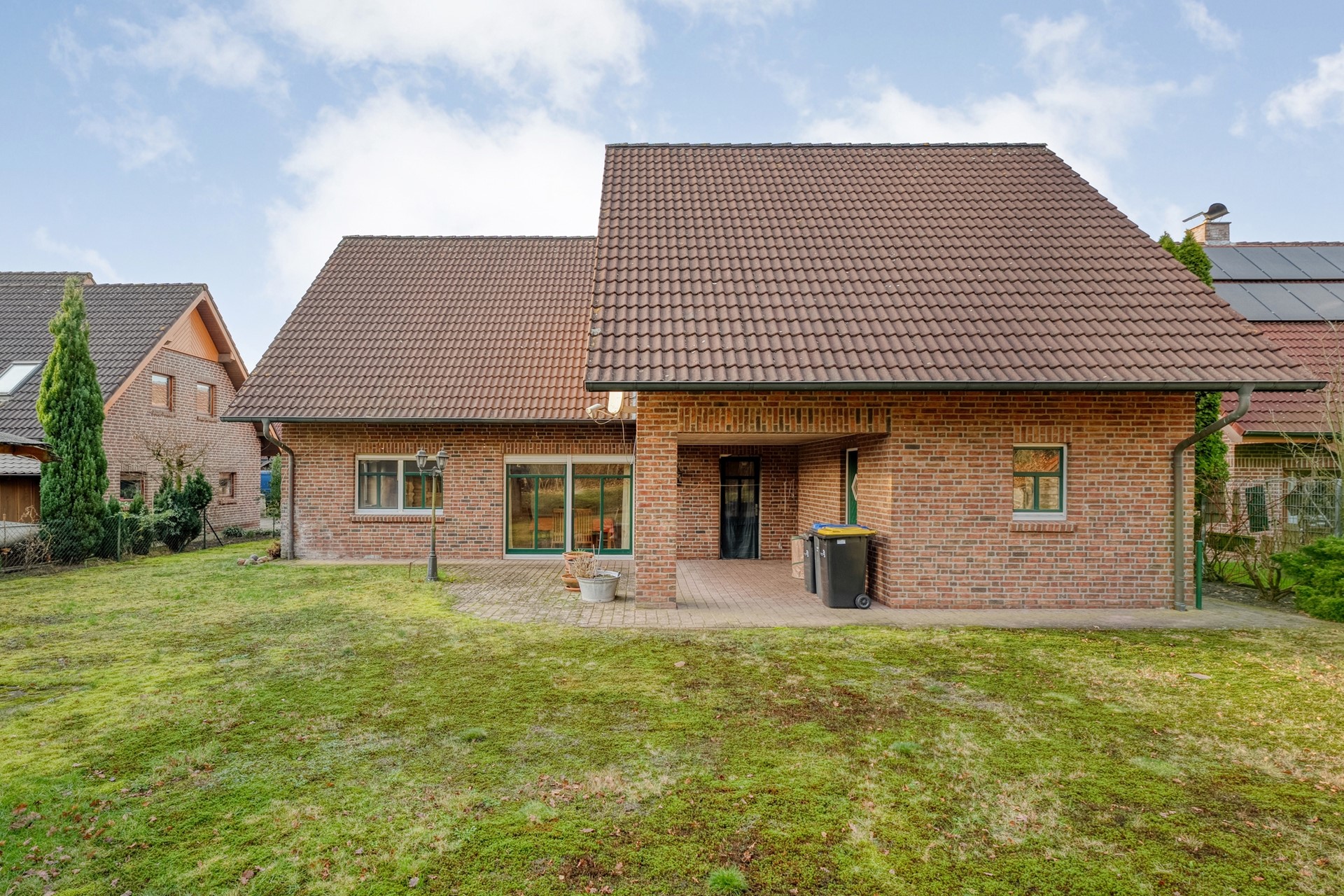 - Achterzijde vrij gelegen met achterompad en uitkijkend over het groen.